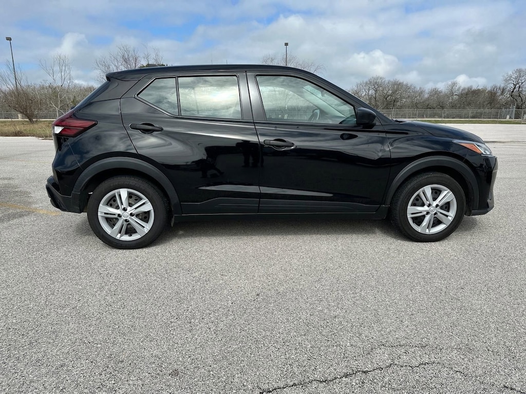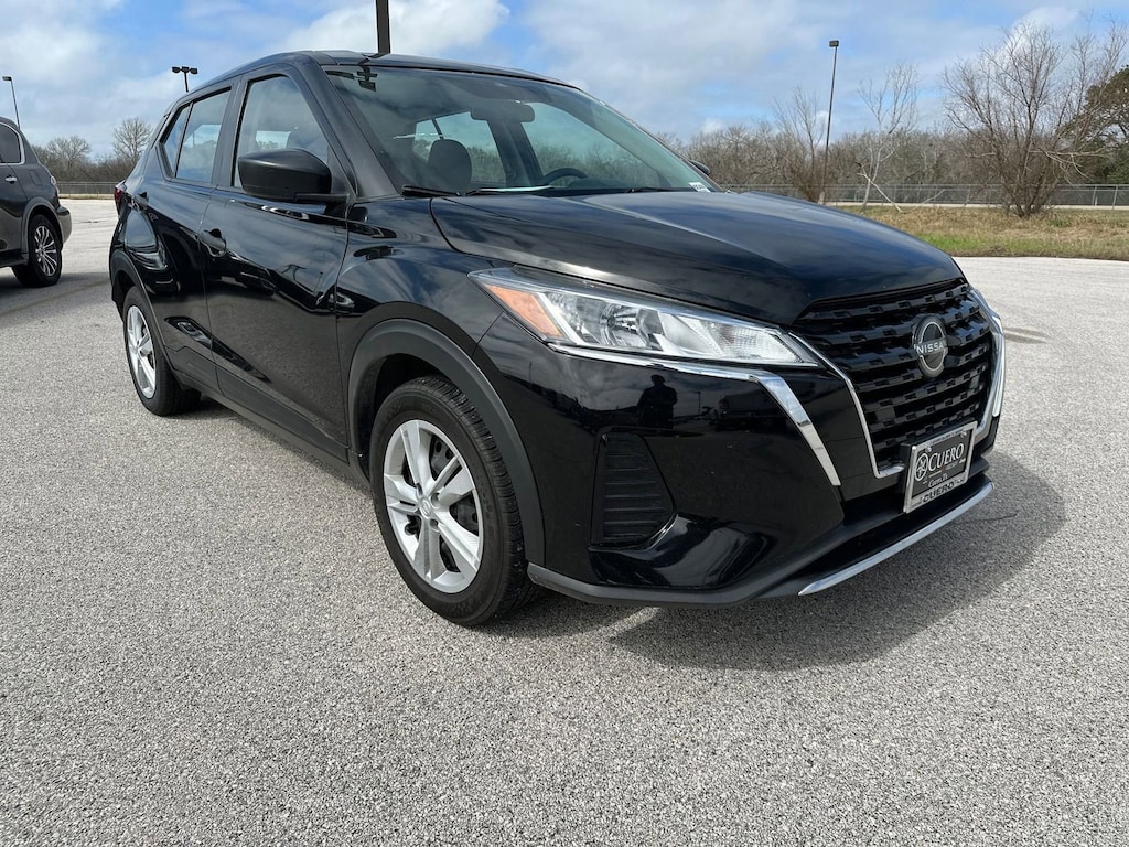 Delivers 36 Highway MPG and 31 City MPG! This Nissan KICKS delivers a Regular Unleaded I-4 1.6 L/98 engine powering this Variable transmission. SUPER BLACK, CHARCOAL, CLOTH SEAT TRIM, [L92] CARPETED FLOOR MATS W/CARGO MAT.
